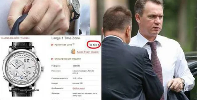 Как свидетельствует фото, сделано Соделем, у высокопоставленного чиновника на руке были обнаружены часы A. Lange & Sohne. Lange 1. Time Zone.