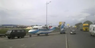 Газета КП в Украине пишет, что на повороте трассы рядом с самолетом стоит разбитая Skoda Fabia, у нее пострадал бампер. Одна из версий ДТП предполагает, что водитель отвлекся на самолет и врезался в джип, который ехал перед ним.