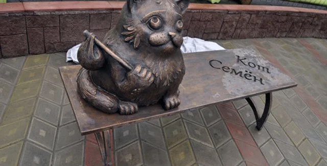 Отметим, что тематику памятника выбирали путем интернет-голосования. Коту Семену удалось обойти "мальчика, лизнувшего на морозе качели", пингвина и божество Ктулху.
