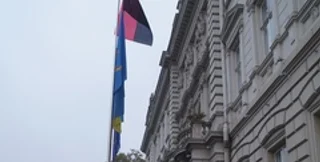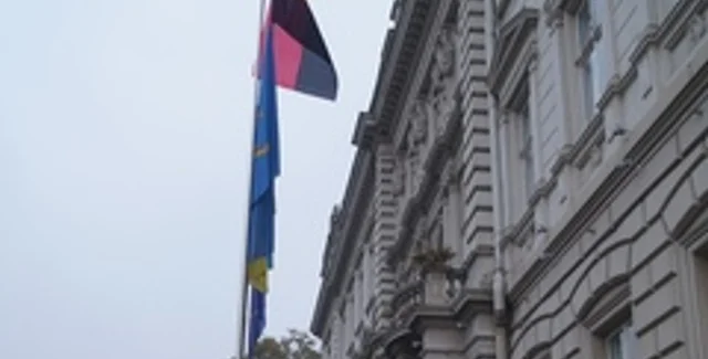 Сегодня, 14 октября, в честь годовщины создания Украинской повстанческой армии возле здания Львовского областного совета были вывешены красно-черные флаги.