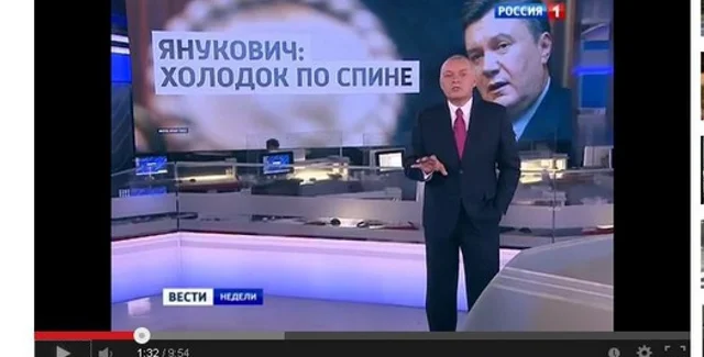 В частности, Киселев называет лидеров ЕС "новыми начальниками" Виктора Януковича, которые "отдают приказы" освободить Юлию Тимошенко.