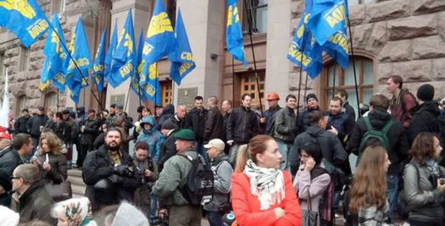 Акция протеста против заседания Киевского городского совета на данное время проходит мирно. Однако активисты от партии ВО Свобода намерены прорваться внутрь здания, чтобы провести там заседание своей фракции.