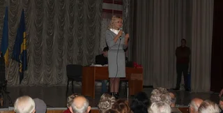 Зал подсвечивали автономными источниками освещения. В своем выступлении Фарион раскритиковала планы оппозиционных народных депутатов Ирины Геращенко и Олеся Дония открыть курсы украинского языка в Черкассах. "Это надо высмеивать себя на 20 лет независимости открыть курсы украинского языка. Возьми книгу и выучи", - подчеркнула она.
