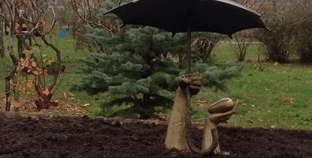В столичном парке Позняки появилась новая скульптура. Она представляет собой две бронзовые руки, в одной из них сердце, другая - бережно держит над ним зонт.