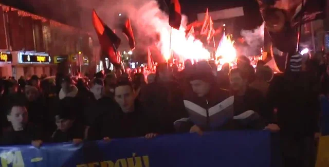 Сегодня вечером, 15 ноября, футбольные фанаты и сторонники ВО Свобода проводят марш в центре Киева с призывом разрешить им использовать на трибунах стадионов символику ОУН-УПА.