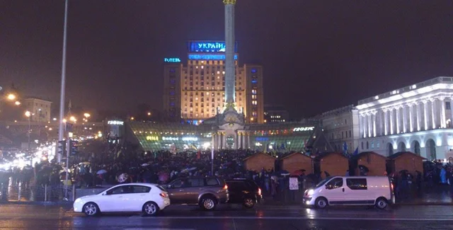 Сейчас в столице шел сильный дождь, что не помешало гражданам продолжать митинговать. Количество протестующих все увеличивается. Обстановка остается спокойной, несмотря на присутствие бойцов Беркута и ограждений. Кроме того, группы милиционеров стоят в подземном переходе на улицу Крещатик.