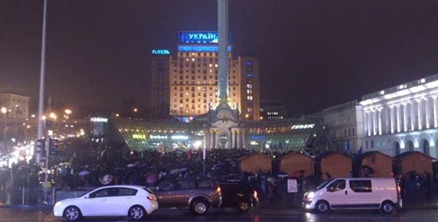 Однако, как сообщает Украинская правда, автомобили могут проехать лишь до Европейской площади, где проходит многотысячная акция в поддержку евроинтеграции Украины, и вынуждены поворачивать обратно.