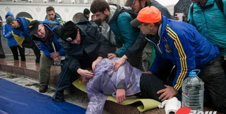 Сотрудник правоохранительных органов помог одному из активистов Евромайдана, которому сегодня утром, 25 ноября, стало плохо. Милиционер помог мужчине еще до прибытия медиков.