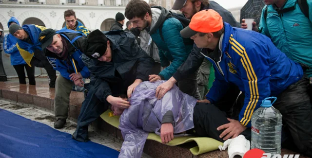 "Помогали все. И тот, кто первым схватил ложку (у парня случился приступ эпилепсии), и те, кто помогал - держал его, и милиционер, который действовал достаточно быстро и четко. До приезда "скорой " парень уже был более - менее в сознании. Его забрала скорая. А уборщицы на Майдане сказали, что с ним это не впервые - все же погода и стрессы", - написала журналист газеты День Мария Семенечко на своей странице в Facebook.