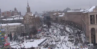 Колонна из 10 транспортных средств, принадлежащих милиции, в частности Внутренним войскам, прибыла в понедельник на Михайловскую площадь