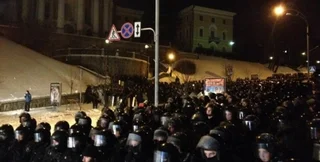Со сцены передали, что на Майдан пробралась большая группа студентов. Стена правоохранителей стоит на месте, не двигаясь.