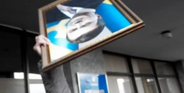 Активисты завладели тремя портретами президента Виктора Януковича, балансовой стоимостью 540 гривен "для демонстрации личного превосходства и безнаказанности, для самоутверждения своего лидерства путем унижения достоинства и взглядов других граждан".