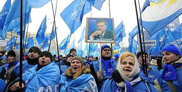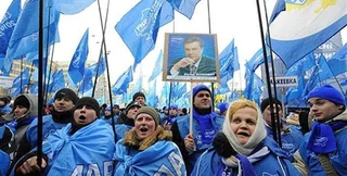 Сторонники Януковича держали в руках плакаты с надписями: "Нет "оранжевому" государственному перевороту", "Фашизм не пройдет!", "Нет иностранному вмешательству в дела Украины" и скандировали "Крым! Президент! Украина!", "Мы регионы — нас миллионы".