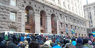 Участники Евромайдана удерживали в ночь на среду в здании КГГА молодого человека с пистолетом и его спутницу, гражданку России
