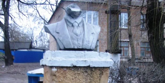 Об этом сообщает пресс-служба управления МВД Украины на Приднепровской железной дороги. Памятник находится на станции примерно с 50-х годов XX столетия, нигде на балансе не состоит. Бюст изготовлен из песчано-цементной смеси, и за ним никто уже долгое время не ухаживает.