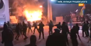 Протестующие сожгли автобус "Беркута" на Грушевского