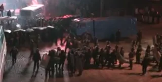 Против ближнего ряда протестантов возле стадиона "Динамо" милиция применила водомет