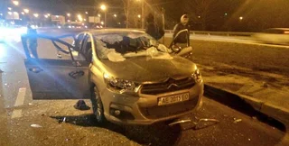 Около часа назад на улице Богатырской в Киеве колонна автобусов "Беркута", двигавшаяся в центр Киева, разбила автомобиль одного из активистов Автомайдана