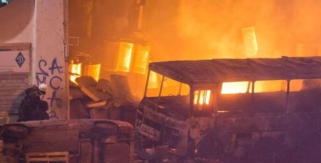 Демонстранты бросают в милицию булыжники и бутылки с зажигательной смесью. Численность радикалов на Европейской площади и в начале улицы Грушевского увеличилась и составляет примерно 3-4 тысячи человек.