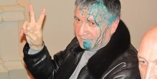 Экс-председатель Харьковской облгосадминистрации, народный депутат от "Батьківщини" Арсен Аваков облит зеленкой в международном аэропорту "Харьков".