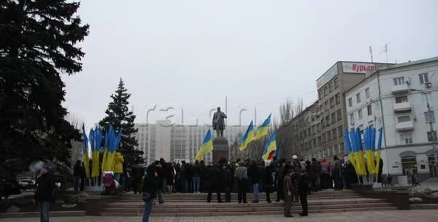 Около 400 человек, которые позиционируют себя, как противники Евромайдана, собрались на площади возле памятника Тарасу Шевченко, где постоянно проходили акции евромайдановцев