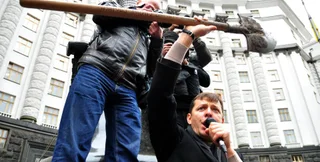 Вместе с тем противостояние на Грушевского продолжается. Митингующие бросают в правоохранителей коктейли Молотова, а те в ответ - задействуют газовые и светошумовые гранаты. Однако и то, и другое оружие редко когда достигает цели, поскольку митингующих и милицию разделяет почти сто метров. Гранаты и коктейли Молотова чаще всего падают на нейтральной территории.