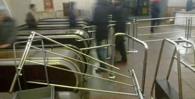 "Титушки" убегали от Автомайдана в метро Арсенальная . За проезд не платили!", - сообщил в Фейсбуке один из них.