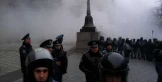 Силовики по состоянию на 12:10 применили слезоточивый газ против протестующих на улице Грушевского в Киеве возле стадиона "Динамо"