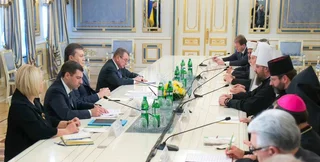 "Огромную роль в поисках мирного выхода из ситуации будет играть церковь. Я очень прошу вас: вы хорошо знаете, чувствуете своих верующих. Обратитесь к ним, обратитесь с пасторскими словами", - сказал президент, обращаясь к религиозным деятелям.