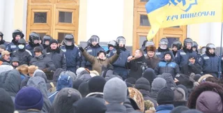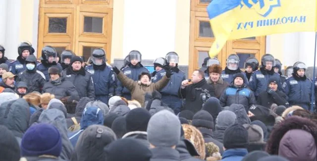 Более тысячи митингующих сломали входные двери и прорвались в помещение Винницкой облгосадминистрации