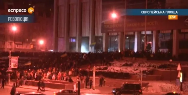 По последней информации, митингующие начали возводить баррикады вокруг Украинского дома после того, как появилась информация о пребывании внутри спецназовцев. После построения баррикад евромайдановцы якобы предложили правоохранителям снять шлема и покинуть здание , однако те отказались. Уже после этого начался штурм.