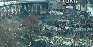 Напомним, на ул. Грушевского с 19 января продолжаются столкновения. Сотни людей ранены, есть погибшие. Правоохранители периодически активно применяют водометы. Один - для тушения костров, которые разводят протестующие, другой - для обливания протестующих водой.