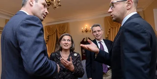 Накануне в интернете появилась запись телефонного разговора Нуланд с Пайеттом, в котором она нецензурно отозвалась о роли ЕС в урегулировании украинского кризиса. Впоследствии представитель госдепа США Дженнифер Псаки сообщила, что Нуланд принесла извинения европейским партнерам за свои высказывания. Эти высказывания уже осудили канцлер ФРГ Ангела Меркель и глава Европейского Совета Херман Ван Ромпей.