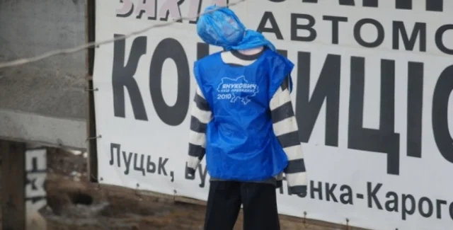 В Луцке в воскресенье на мосту нашли куклу, которая изображала сторонника Партии Регионов