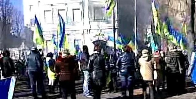 Группа митингующих разбила часть окон в штабе Партии регионов