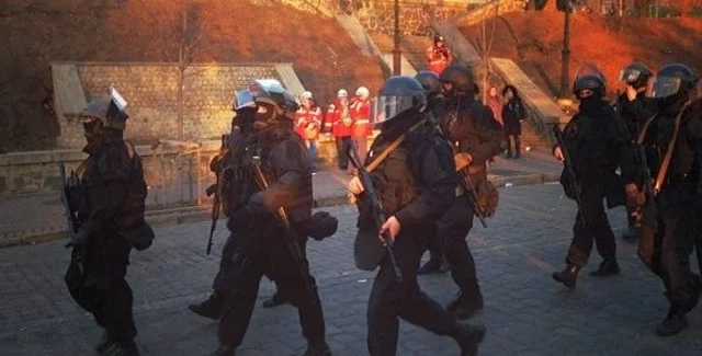 Два отряда правоохранителей разбирают баррикады на Владимирском спуске возле Украинского дома в Киеве,сообщает РБК-Украина.