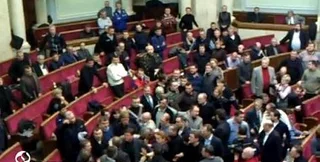 Депутат от Партии регионов Виталий Грушевский предложил сформировать переговорные группы и собраться завтра. В парламенте чуть не началась драка