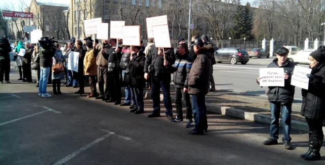 Возле здания посольства Российской Федерации в Киеве прошла акция протеста союза афганцев против агрессии России в отношении Украины
