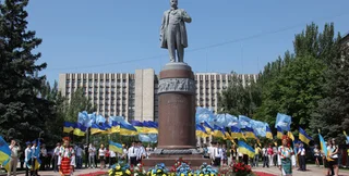 Но вечером того же дня возле памятника собирались пророссийские митингующие, которые вели себя достаточно агрессивно, сметая все, что связано с национальной символикой Украины. Было уничтожено несколько украинских флагов, снят с флагштока у здания облгосадминистрации, которая располагается в 100 метрах от памятника Шевченко, государственный стяг, а также сожжен флаг с символикой донецкого футбольного клуба "Шахтер".