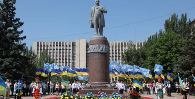 В Донецке памятник великому украинскому поэту, прозаику и художнику Тарасу Шевченко осквернили нецензурной надписью