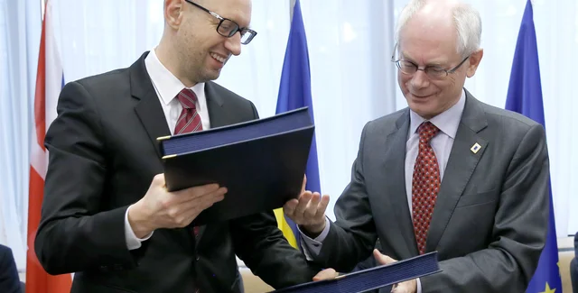 В подписании документа со стороны Украины принял участие премьер-министр Арсений Яценюк, со стороны ЕС - Президент Совета ЕС Герман ван Ромпей, другие руководители европейских институтов, а также лидеры стран-членов ЕС.