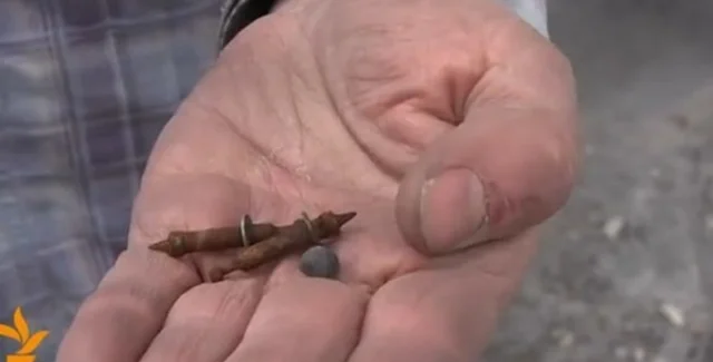 Один из рабочих, восстанавливающих колоннаду стадиона "Динамо", нашел на крыше охотничью дробь