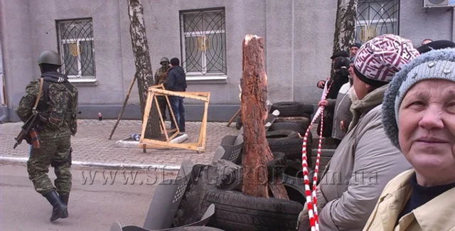 За баррикадами стоят люди, которые поддерживают захватчиков одобрительными возгласами, передает местный портал slavgorod.com.ua.