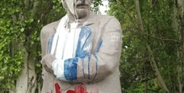 Вандалы раскрасили памятник Вячеславу Черноволу в Николаеве в цвета российского флага
