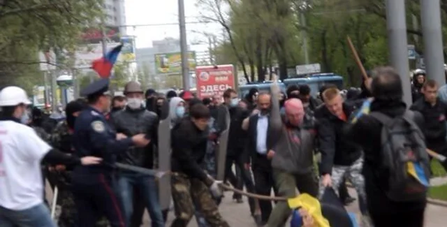 Напомним, 28 апреля вечером в Донецке несколько десятков агрессивно настроенных молодчиков напали на украинских активистов. Они догнали колонну с украинскими активистами и набросились с дубинками, железными кольями, цепями, избивали всех подряд.