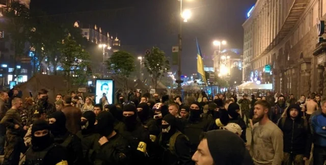 "Активисты СНА собрались под зданием Киевсовета и двинулись факельным шествием в сторону Майдана. У баррикады напротив Главпочтамта колонну остановили. Началась драка", - передает Громадське ТВ.