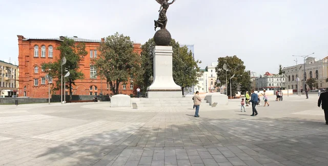 Памятник был торжественно открыт 22 августа 2012 накануне 21-й годовщины независимости государства и Дня города Харькова. Монумент является постаментом строгой геометрической формы с облицовкой из гранитных плит серого цвета, на котором установлена бронзовая фигура древнегреческой богини победы Ники на шаре.
