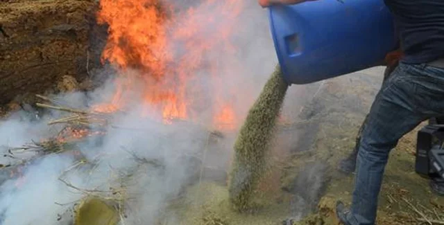 Сотрудники Службы безопасности Украины сожгли 3 тонны марихуаны в Ивано-Франковской области.