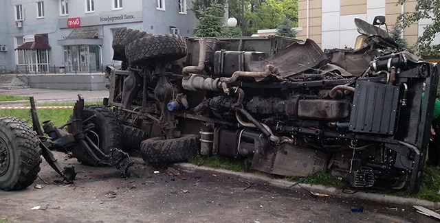 "Камазов было два. Один взорванный стоит на улице Взлетной. Второй лежит на Киевском проспекте возле детской больницы", - написал он.