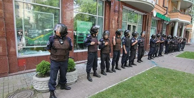 Сегодня в Киеве разгромили отделение Сбербанка России на улице Мазепы, 10.